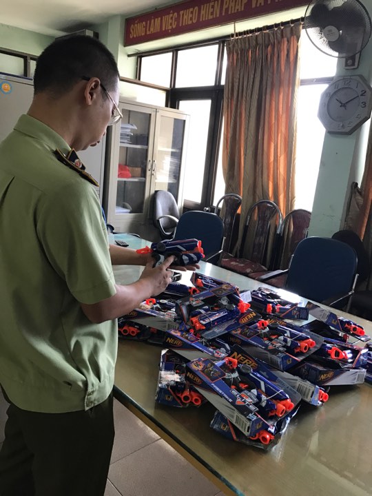 Ngay sau khi bắt được thùng các tông đựng 50 viên nghi là đạn, Đội Quản lí thị trường số 1 lại tiến hành kiểm tra điểm tập kết hàng hoá tại số 160 Thổ Quan 1, phường Ô Chợ Dừa, quận Đống Đa, Hà Nội phát hiện hàng trăm khẩu súng nhựa đồ chơi có đạn có thể gây sát thương cho trẻ em. Đây là mặt hàng đồ chơi bạo lực nhà nước cấm kinh doanh. Toàn bộ số hàng trên là của ông Hà Ngọc Ninh, trú tại Thị trấn Chũ, huyện Lục Ngạn, tỉnh Bắc Giang.